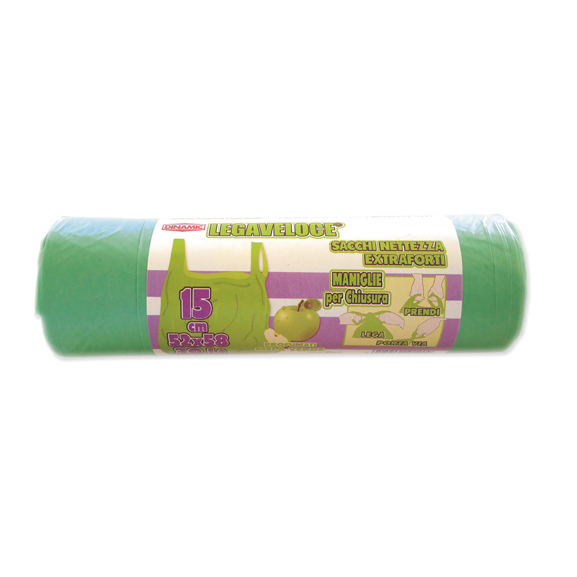 Descrizione dettagliataGestione dei rifiuti pratica ed efficiente. Profumazione mela verde. In polietilene 100% 1° scelta.Capacità di 30 litri.Confezione da 15 pezzi.