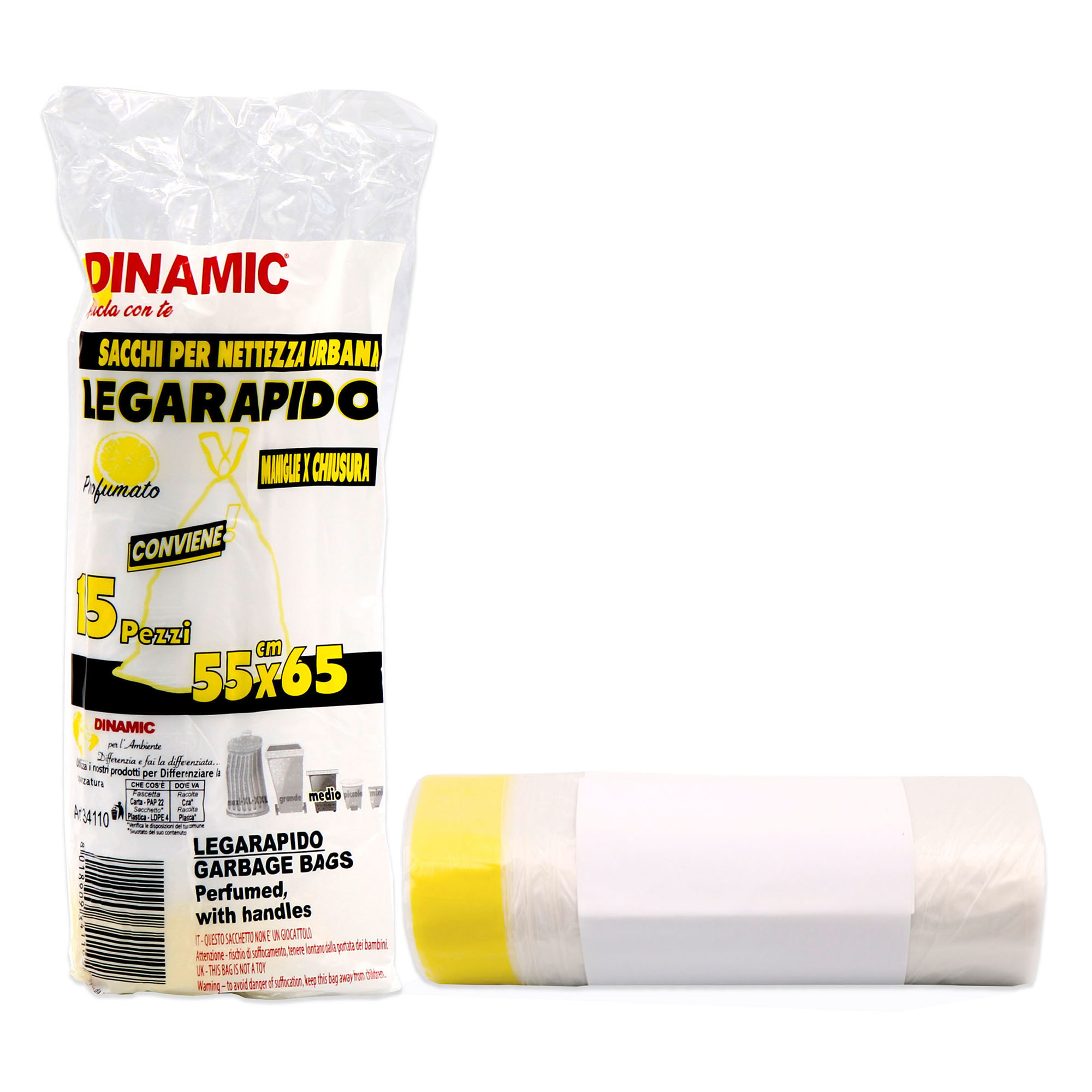 Sacchi per la nettezza urbana - profumati con lacci - 55x65 cm - trasparenti - 15 pz