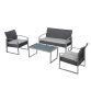 Set composto da un tavolino, un divano e due poltrone. Struttura in acciaio verniciato con vernici epossidiche di colore grigio, rivestimento in polyrattan bianco lavato completo di cuscini di colore grigio. Tavolo rettangolare con top in vetro temperato spessore 5mm. Il set è consegnato smontato e contenuto in un unico cartone.Articolo destinato ad esclusivo uso domestico. Non adatto ad uso pubblico.Set composto da:1 tavolino H37 x P45 x L84cm 2 poltrone H75 x P65 x L59cm 1 divano H75 x P65 x L111cm