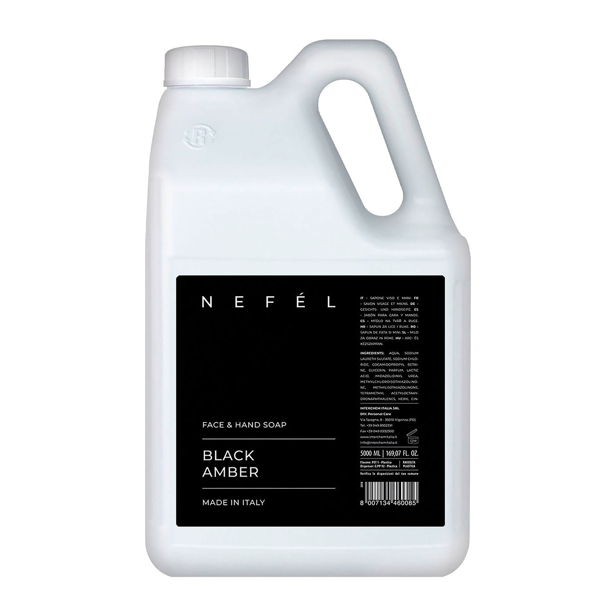 Sapone liquido profumato BLACK AMBER linea Nefél per mani e viso - 5 litri
