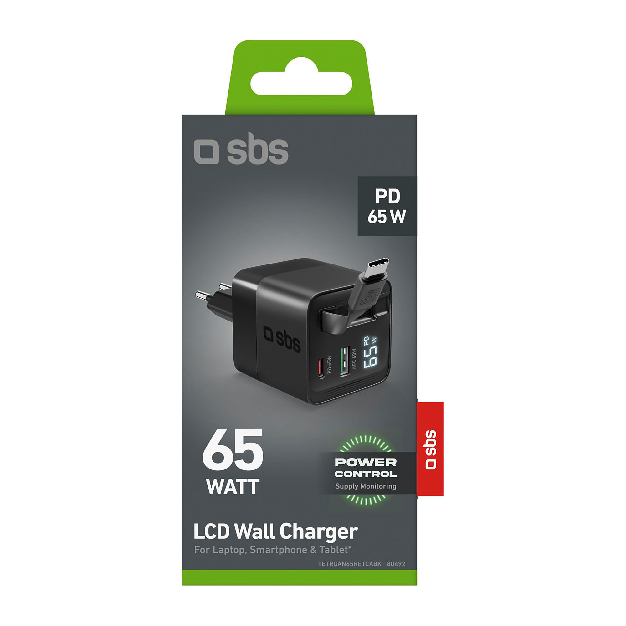 Caricatore da muro con schermo LCD Progettato per semplificare e velocizzare la ricarica dei dispositivi, il caricatore GaN è compatto e potente, dotato di cavetto USB-C integrato, 1 uscita USB-C e 1 uscita USB-A, per alimentare fino a 3 dispositivi contemporaneamente.