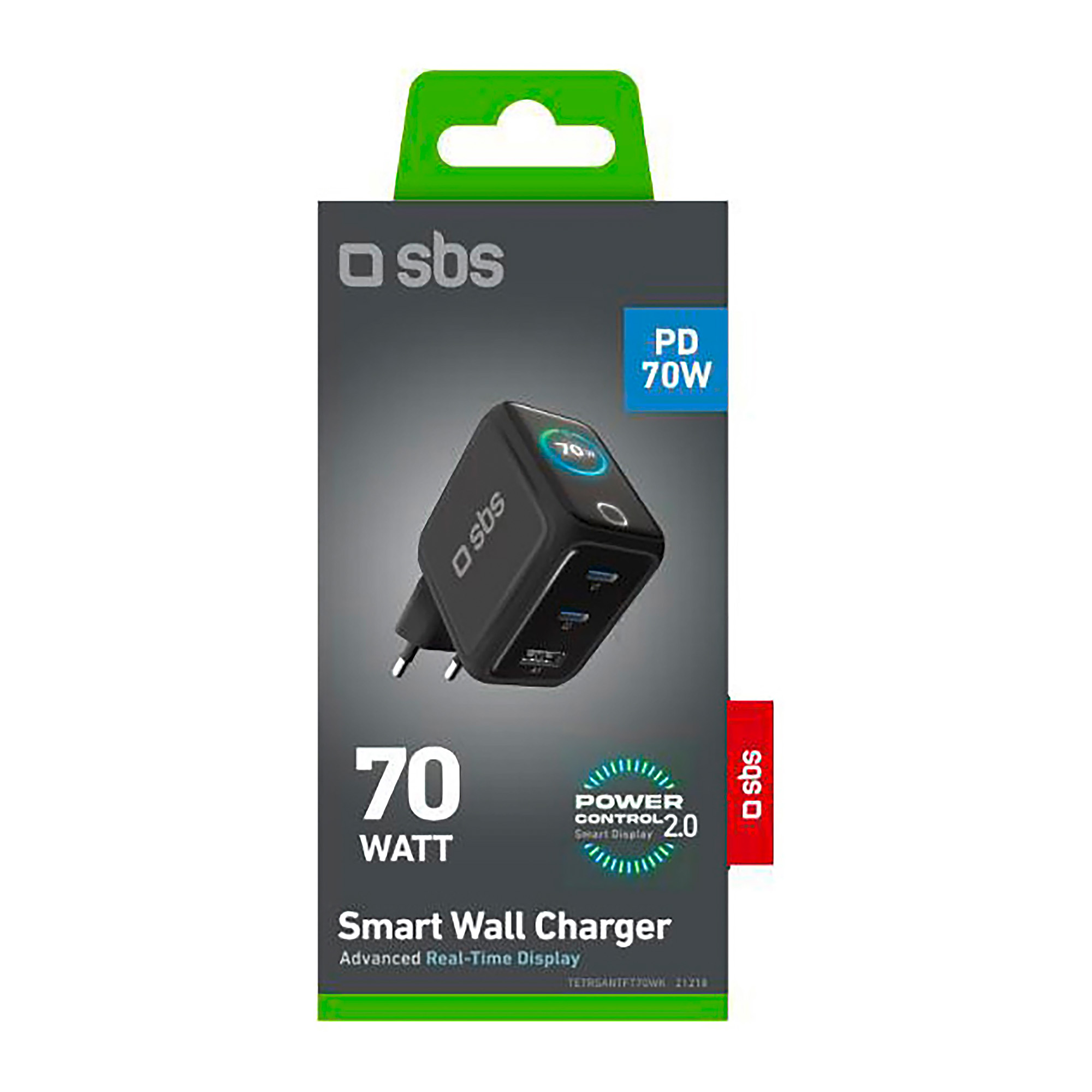 SBS Caricatore USB e USB-C Smart da 70 W con LCD e Power Control 2.0