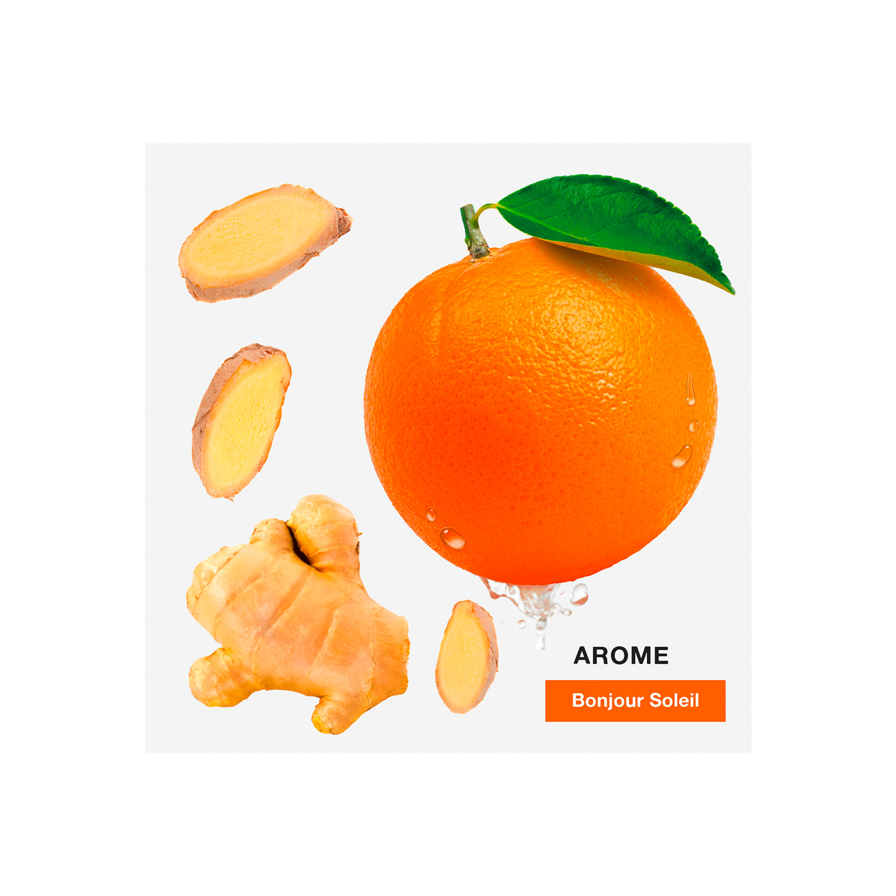 Bonjour Soleil con l'aroma succoso e rinfrescante dell'arancia unito alla vivacità dello zenzero. Immergiti in un sogno tropicale con ogni sorso. L'arancia dona al tè un tocco di dolcezza agrumata, mentre lo zenzero aggiunge un pizzico di vivacità piccante. Questa combinazione equilibrata risveglia i sensi e offre un'esperienza estiva indimenticabile. Con "Bonjour Soleil", ogni sorso è un invito a immergersi nella vitalità dell'estate. L'infuso si scioglie delicatamente nell'acqua fredda, rilasciando gli aromi freschi e frizzanti che catturano il profumo dell'estate. Una rinfrescante bevanda pronta ad affrontare qualsiasi giornata calda. Che tu stia cercando un modo per rinfrescarti nelle calde giornate estive o semplicemente desideri un tocco di paradiso in ogni stagione, " Bonjour Soleil " è il compagno ideale per soddisfare la tua sete di gusti esotici. Ingredienti: pezzi di mela, fiori di ibisco, scorze d'arancia (17%), cannella, (12%), aromi