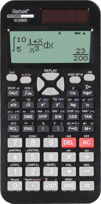 Descrizione dettagliataRebell SC2080S. Fattore di forma: Tasca, Tipo: Calcolatrice scientifica. Righe di testo: 2 linee. Alimentazione: Batteria/Solare. Colore del prodotto: Nero