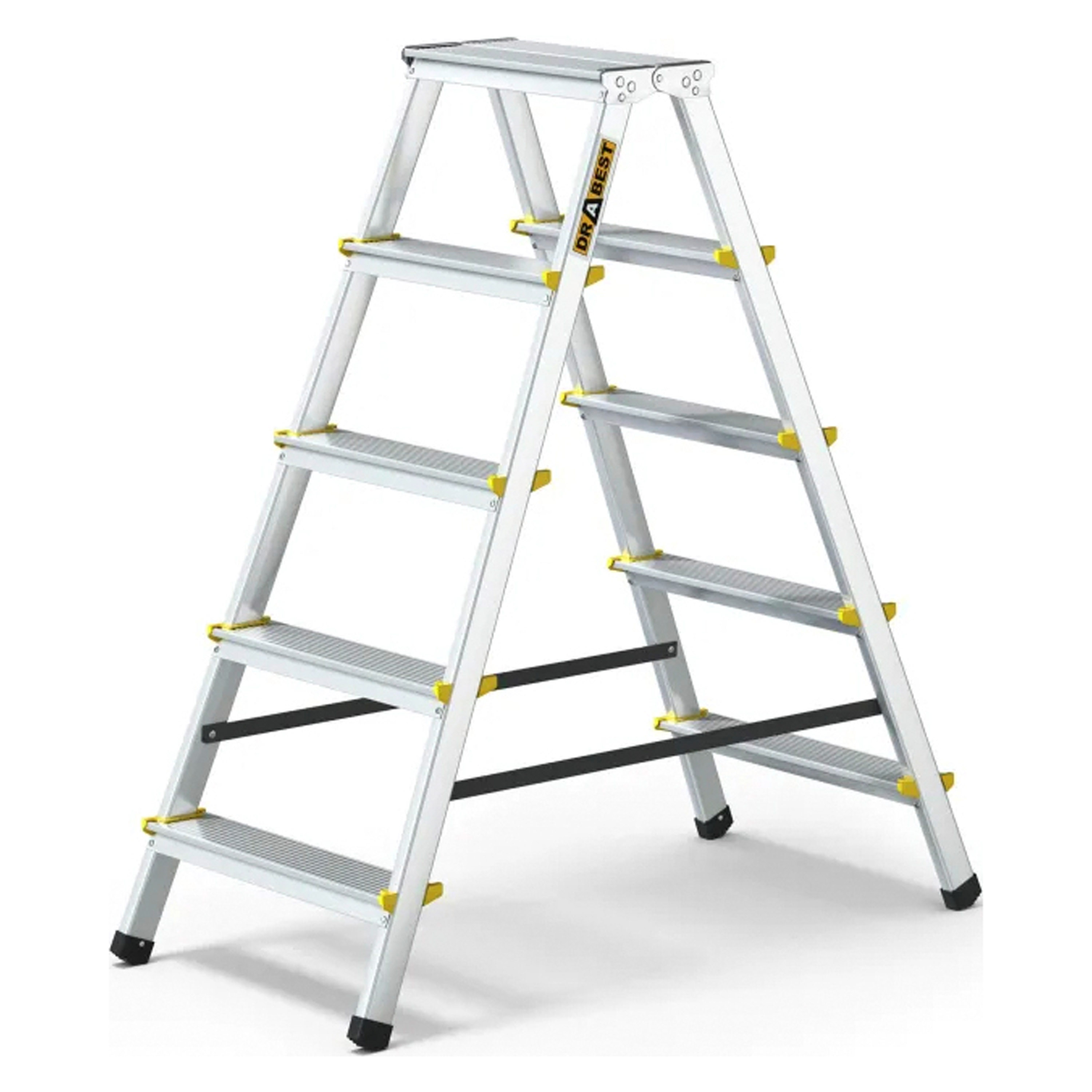 Scala pieghevole Drabest a doppia salita per uso professionale e domestico in alluminio, 5 gradini