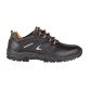 Calzatura bassa, in pelle idrorepellente, colore nero, con fodera in tessuto TRAITex 100% poliestere, antistatica, antishock, antiscivolo, dotata di lamina antiforo APT Plate non metallica.