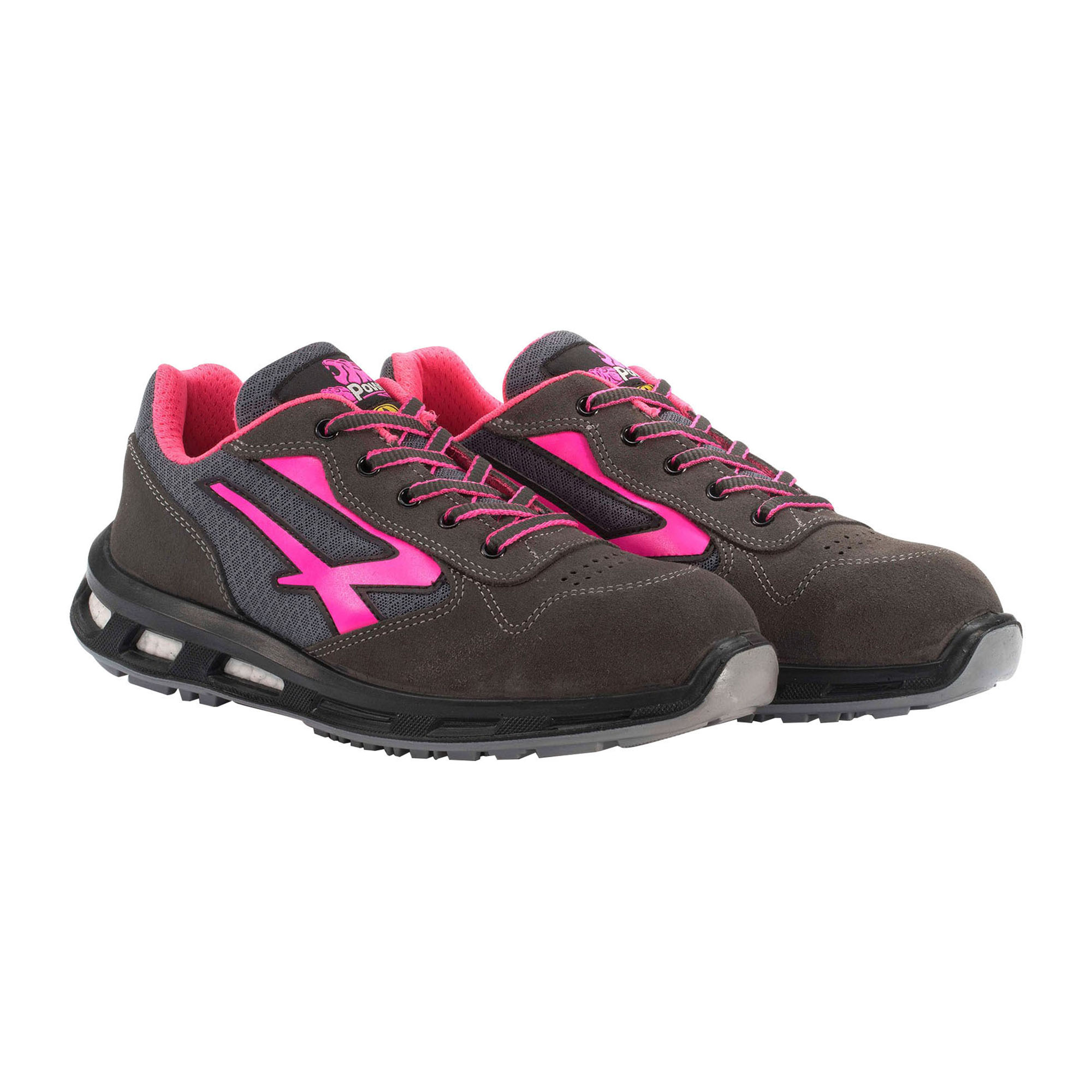 Scarpe antinfortunistiche basse, leggere e comode U-Power della linea Red Lion, con tomaia in nylon ultra traspiranti e morbida pelle scamosciata, puntale in alluminio, antiperforazione, antiscivolo e suola PU/PU infinergy, S1P SRC ESD.