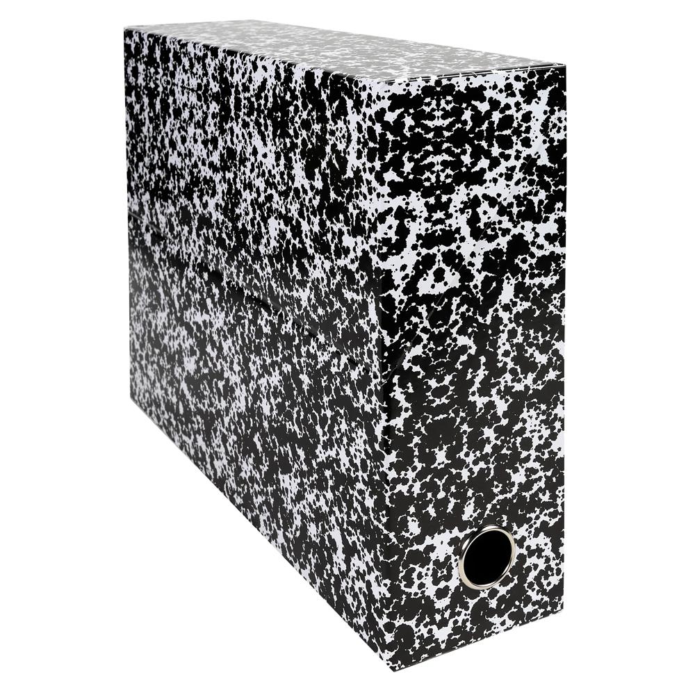 Cartone rigido rivestito con carta stampata verniciata. Certificazione FSC, con una durata di conservazione di 100 anni. Dorso 90 mm per conservare documenti voluminosi in un armadio o su scaffali . Coperchio a ribalta rinforzato per mantenere la scatola ben chiusa. Occhiello in metallo per una facile presa. Dimensioni 25,5x34x9cm.