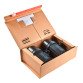 In robusto cartone ondulato, fustellato con un bordo perimetrale in cartone doppio per proteggere il contenuto dagli urti, angoli resistenti.
