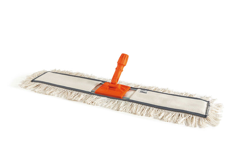 Scopa raccoglipolvere industriale con frangia di cotone da 60cm e finiture di rinforzo. Ideale per medie e grandi superfici. Composta da telaio + frangia (manico non incluso).