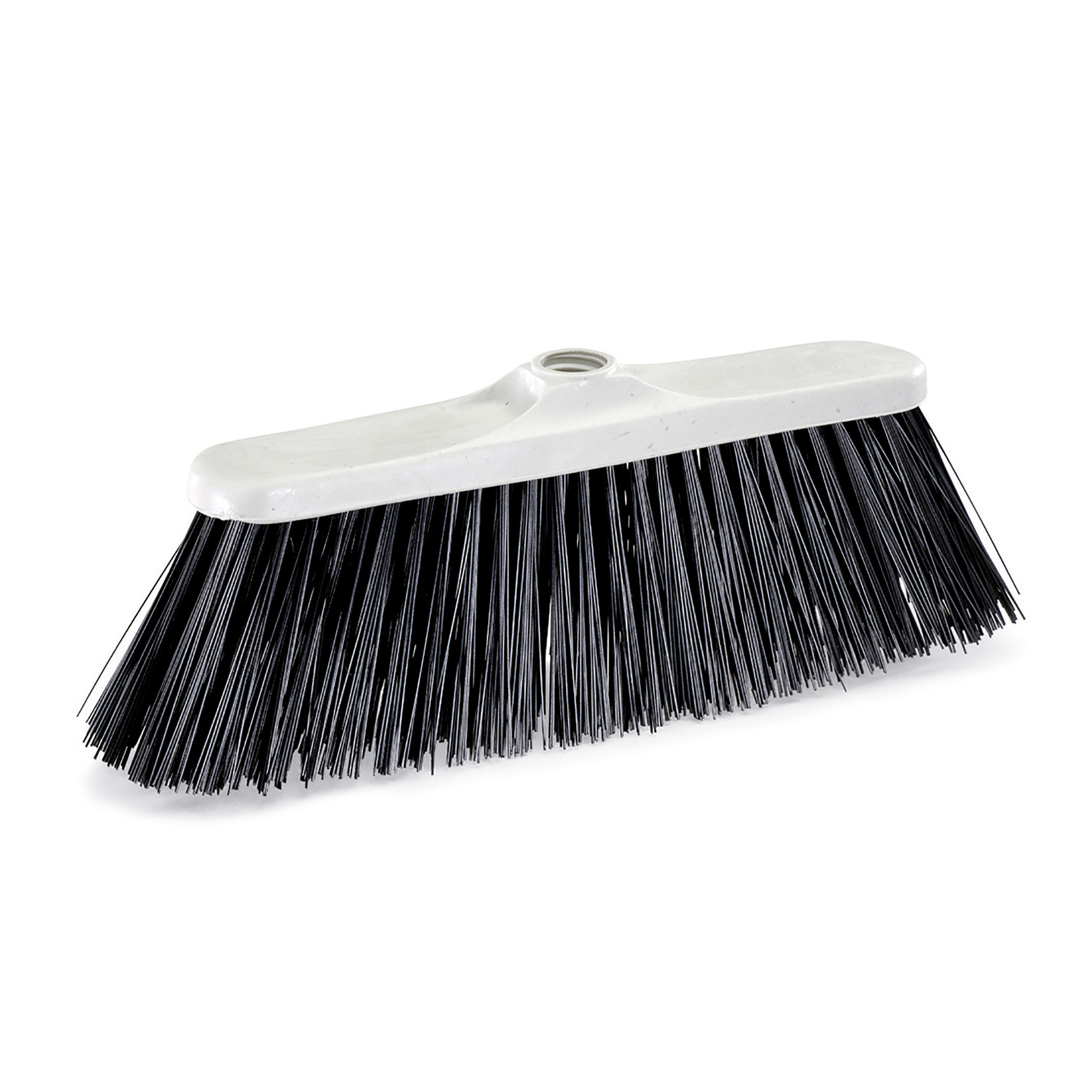 Scopa sintetica industriale con coccia in plastica non piumata.