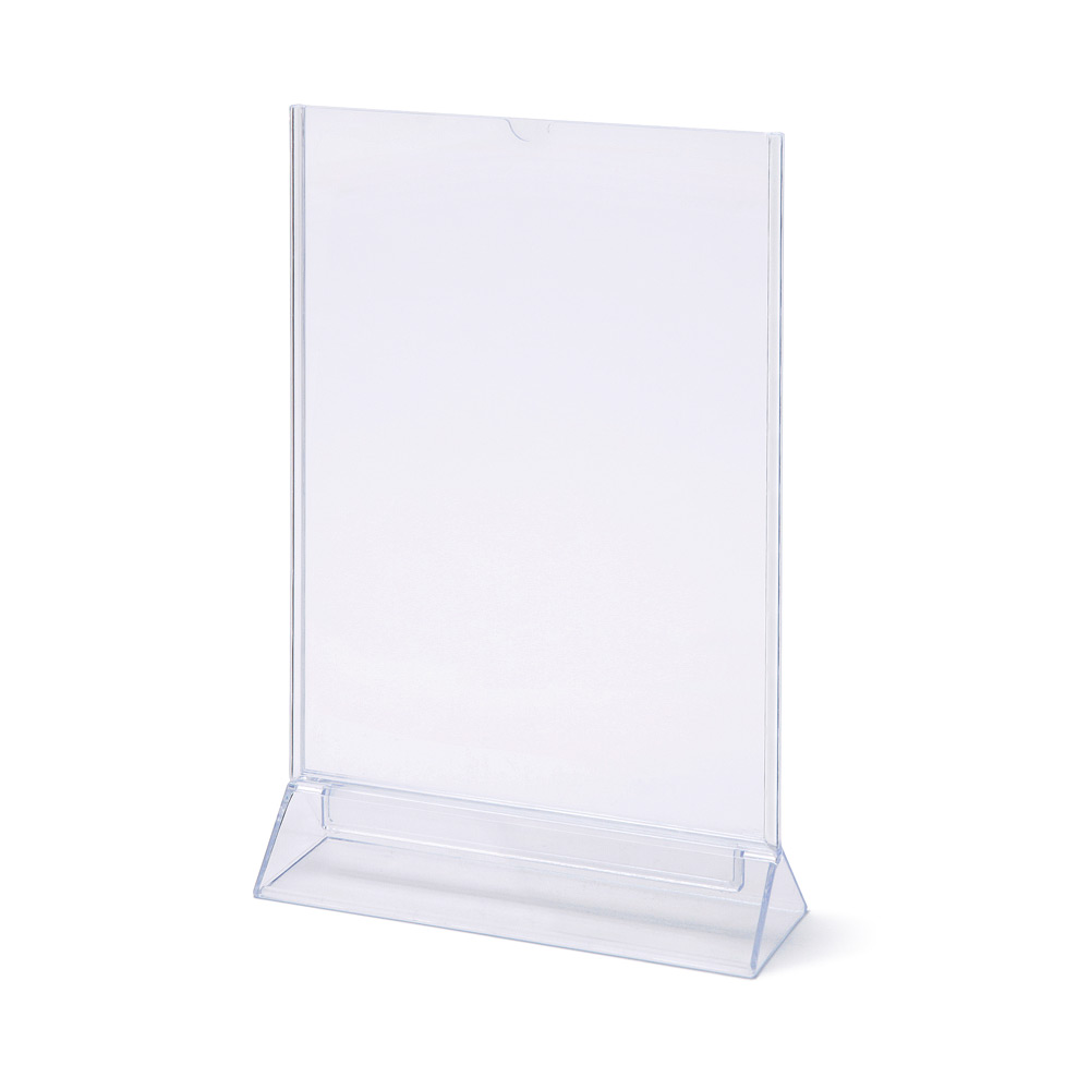 Presentate il vostro menu, i prezzi o gli orari di apertura sul versatile Scritto® T Stand, un portadepliant di alta qualità realizzato in resistente polistirene trasparente. Progettato per garantire una visibilità ottimale, consente al cliente di leggere facilmente le informazioni esposte mentre i fogli informativi possono essere sostituiti in modo rapido ed efficiente. Questo supporto è ideale per tavoli, banconi e banchi informazioni, e risulta particolarmente vantaggioso in ambienti di attesa o reception di spazi pubblici, nel settore della vendita al dettaglio e dell'ospitalità. Investire nel Scritto® T Stand significa offrire ai vostri clienti una comunicazione chiara e professionale.