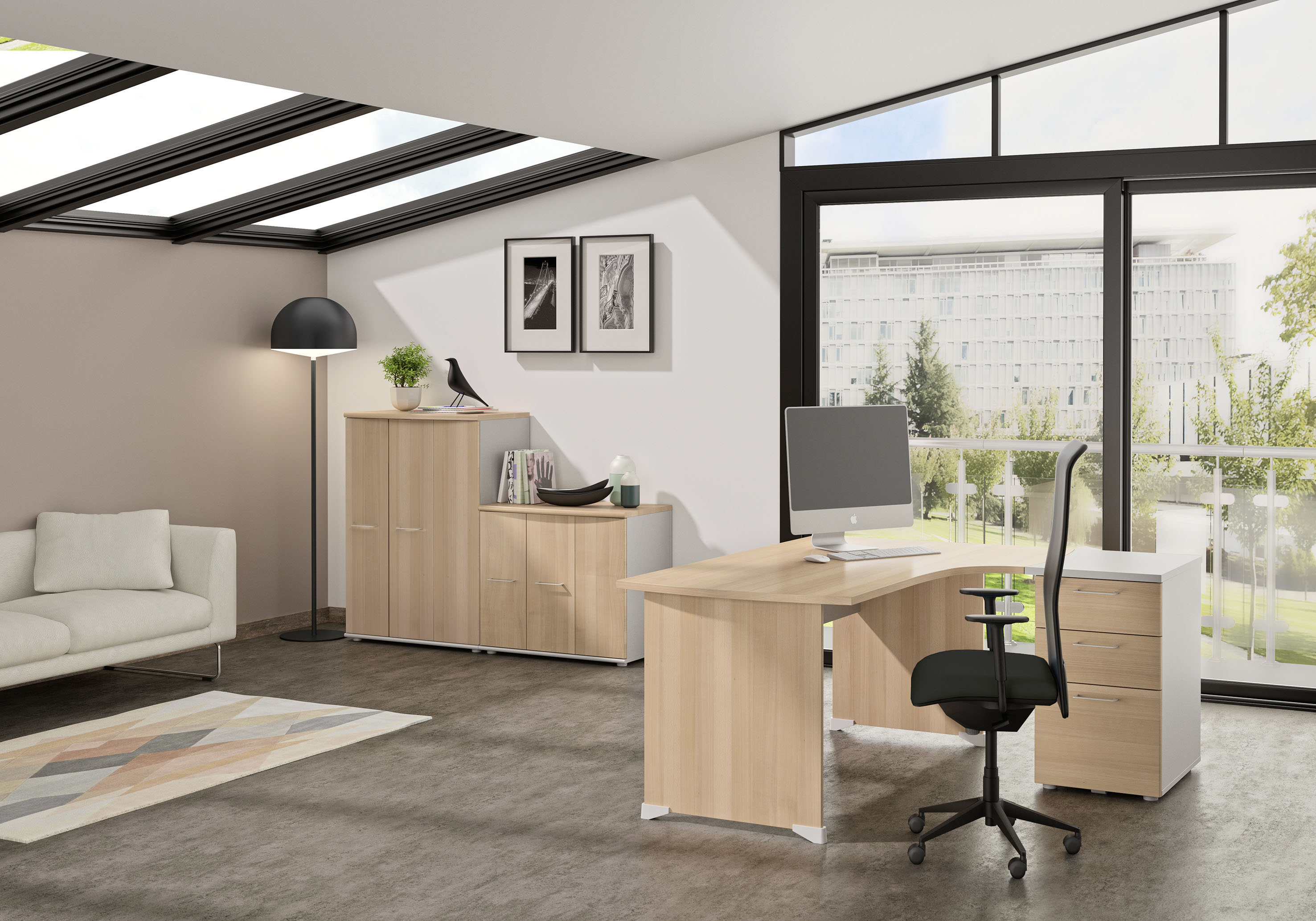 Cassettiera altezza scrivania in legno Quarta Plus con 3 cassetti, profondità 60 cm, da posizionare lato ritorno.