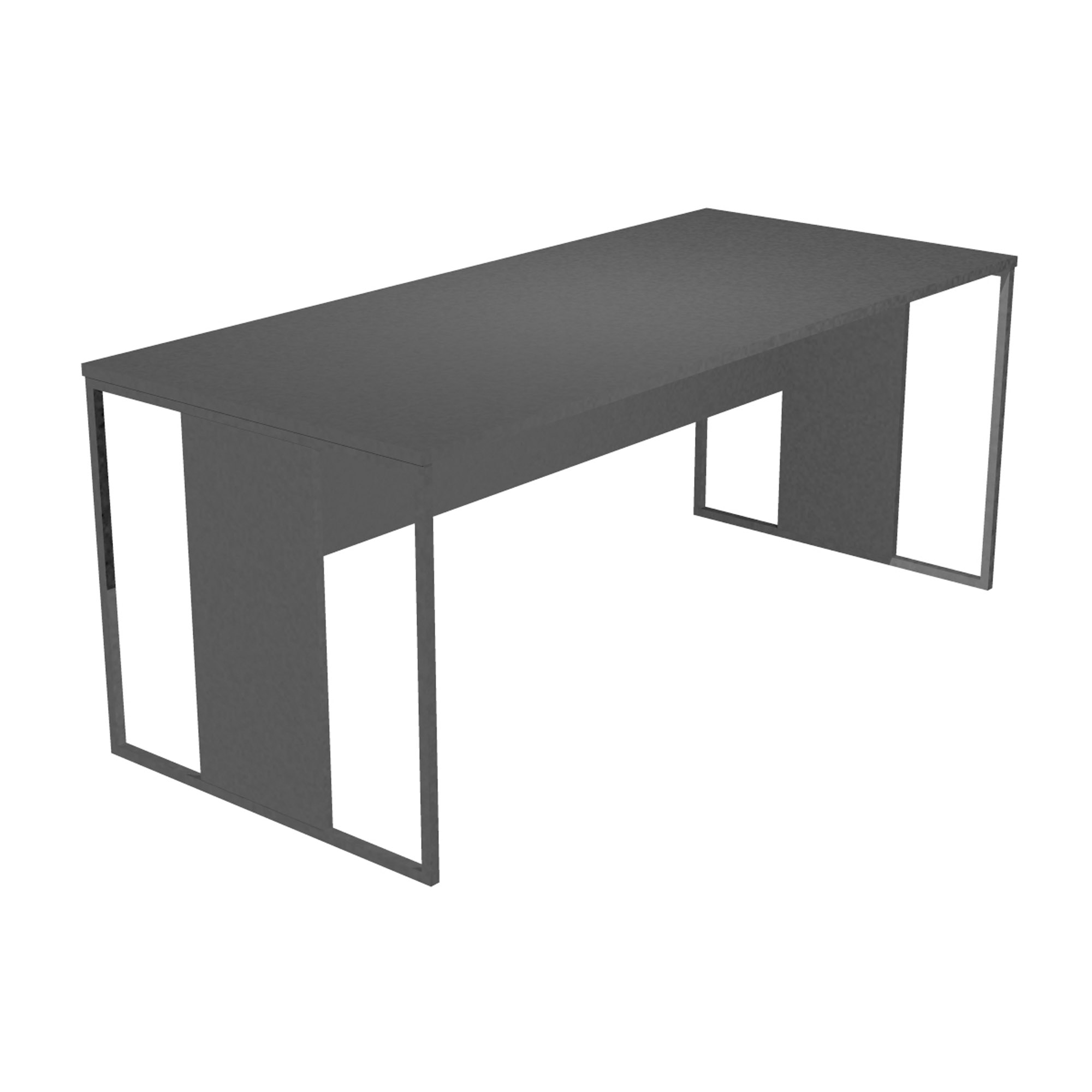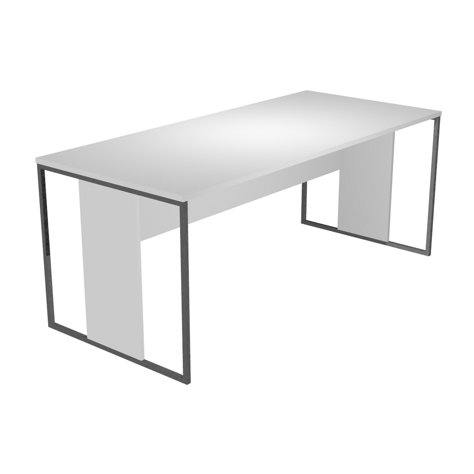 Piano scrivania spessore 22 mm predisposto per l'alloggiamento di 2 anelli passacavi, gambe in metallo a sezione quadrata 20x20 mm con montante e modesty panel in melaminico.