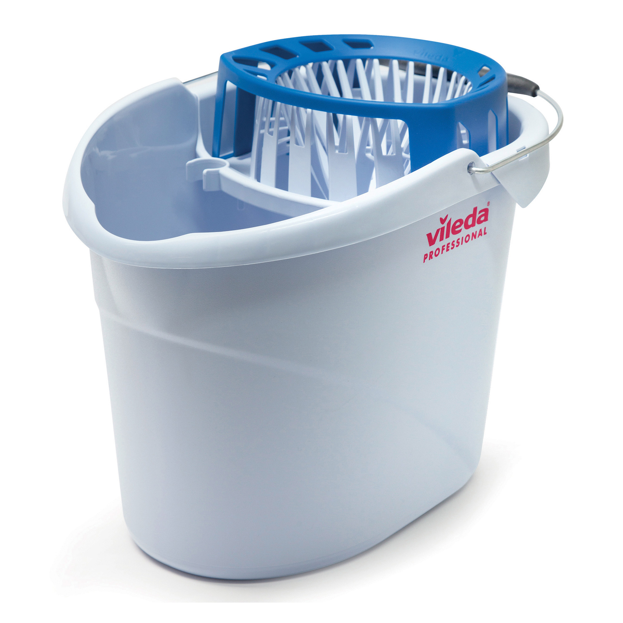 Secchio dal nuovo design molto stabile e capiente (fino a 10 lt), con incavo per agevolare lo svuotamento dell'acqua. Strizzatore rinforzato ed efficace con sistema per il convoglio del fiocco. Manico robusto da 138 cm con protezione