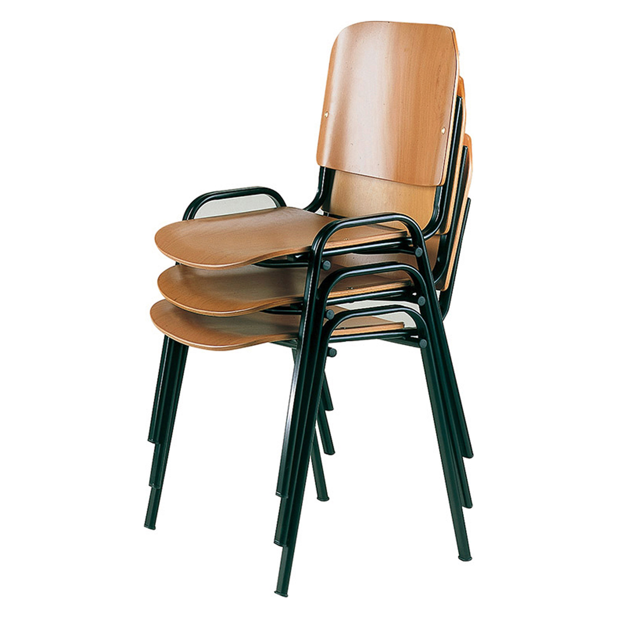 Sedia a 4 gambe in legno Collettività. Schienale fisso. Altezza totale: 80 cm; Altezza seduta: 46 cm; Altezza schienale: 34 cm; Profondità seduta: 41 cm; Larghezza seduta: 53 cm; Larghezza schienale: 48 cm; Braccioli: opzionali. Schienale fisso