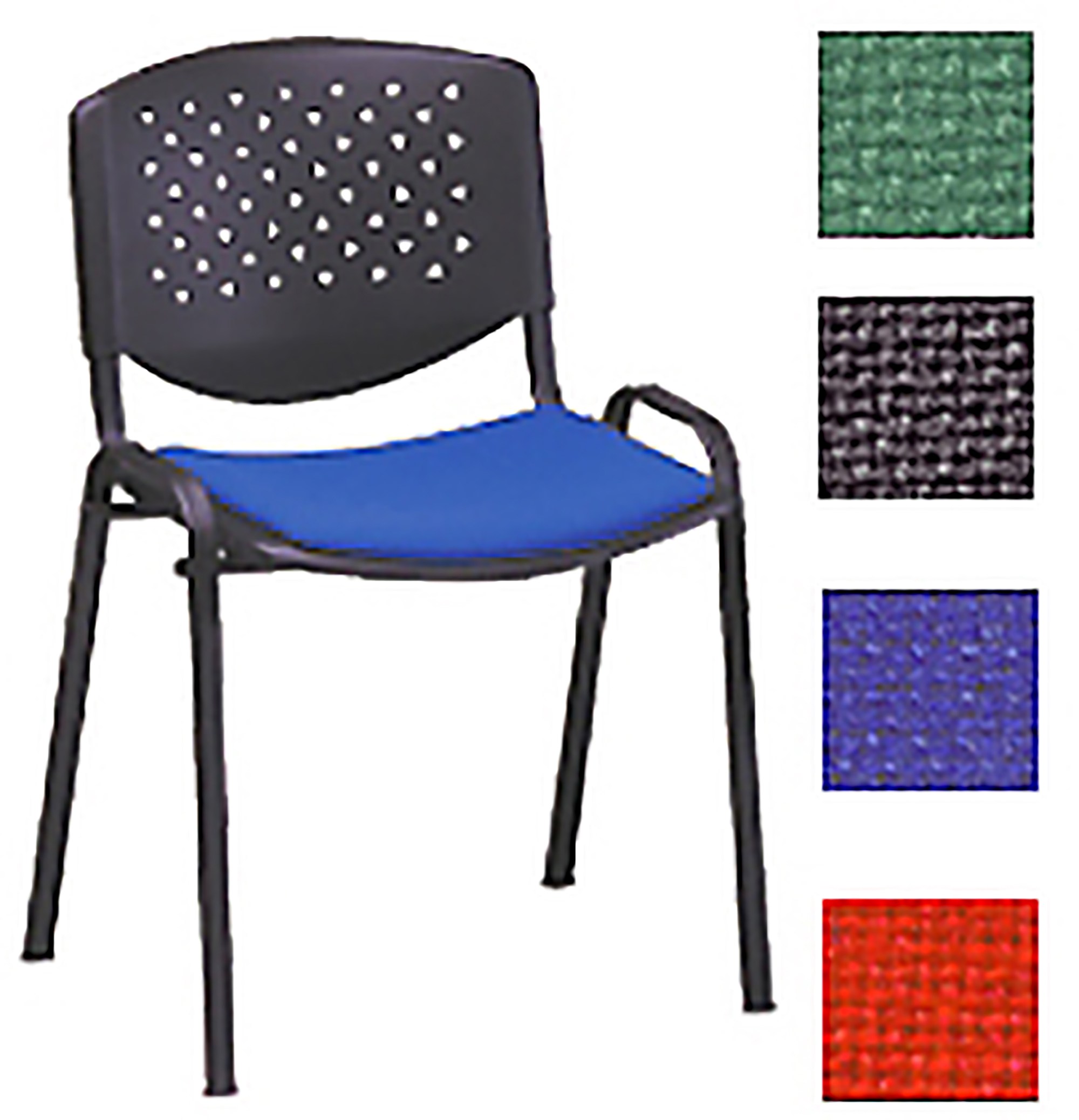 • Sedia attesa CLASSIC DADO con seduta con imbottitura in schiumato poliuretanico e rivestimento in tessuto acrilico eco in 4 colorazioni (Nero, Blu, Rosso ed Arancione) e schienale in polipropilene di colore nero.
