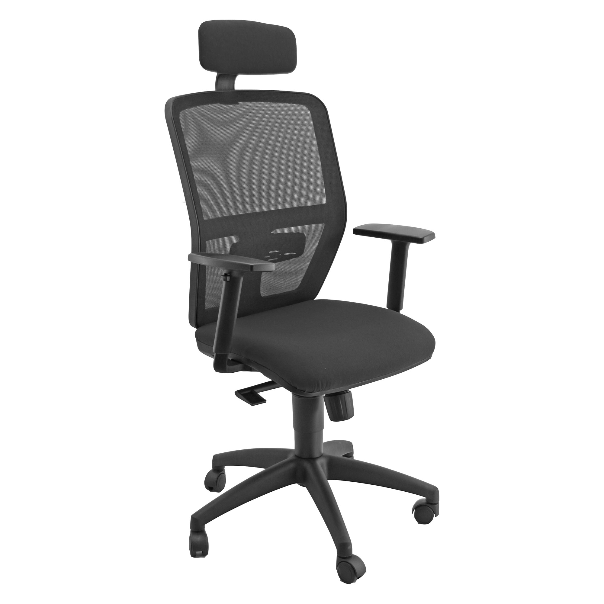 Supporto lombare regolabile - poggiatesta imbottito. Elevazione a gas. Meccanismo synchro antishock a contatto permanente