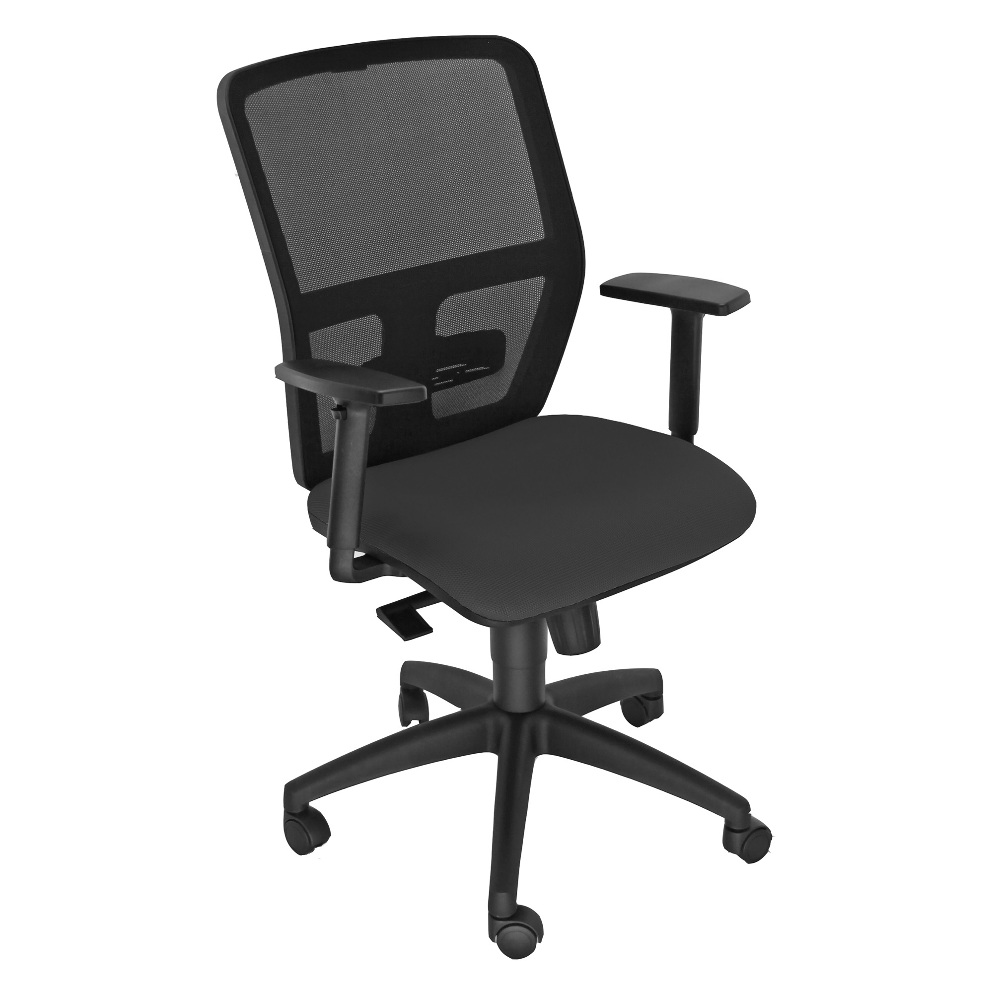 Sedia girevole Operativa con schienale in rete Supporto lombare regolabile. Elevazione a gas. Meccanismo synchro antishock a contatto permanente Altezza Totale: 106 - 118 cm; Altezza Seduta: 43-55 cm; Altezza Schienale: 61 cm; Profondità seduta: 46 cm; Larghezza Seduta: 51 cm; Larghezza Schienale: 51 cm; Braccioli: opzionali