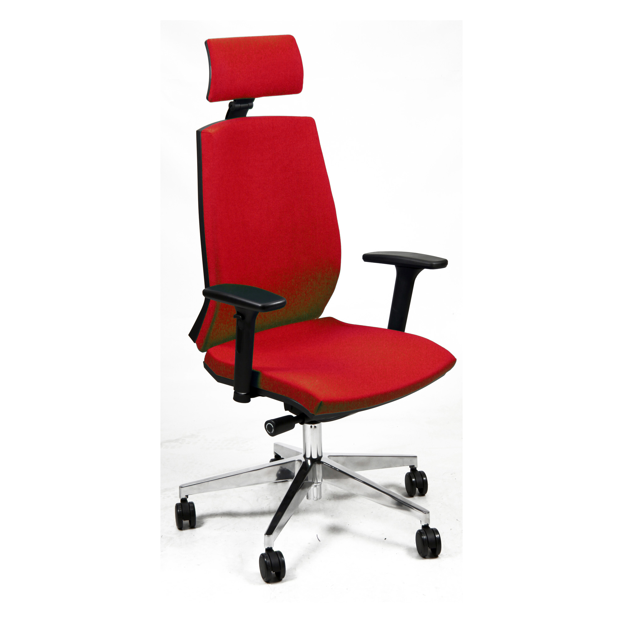 Schienale regolabile up-down. Elevazione a gas. Meccanismo synchro con 4 blocchi antishock a contatto permanente