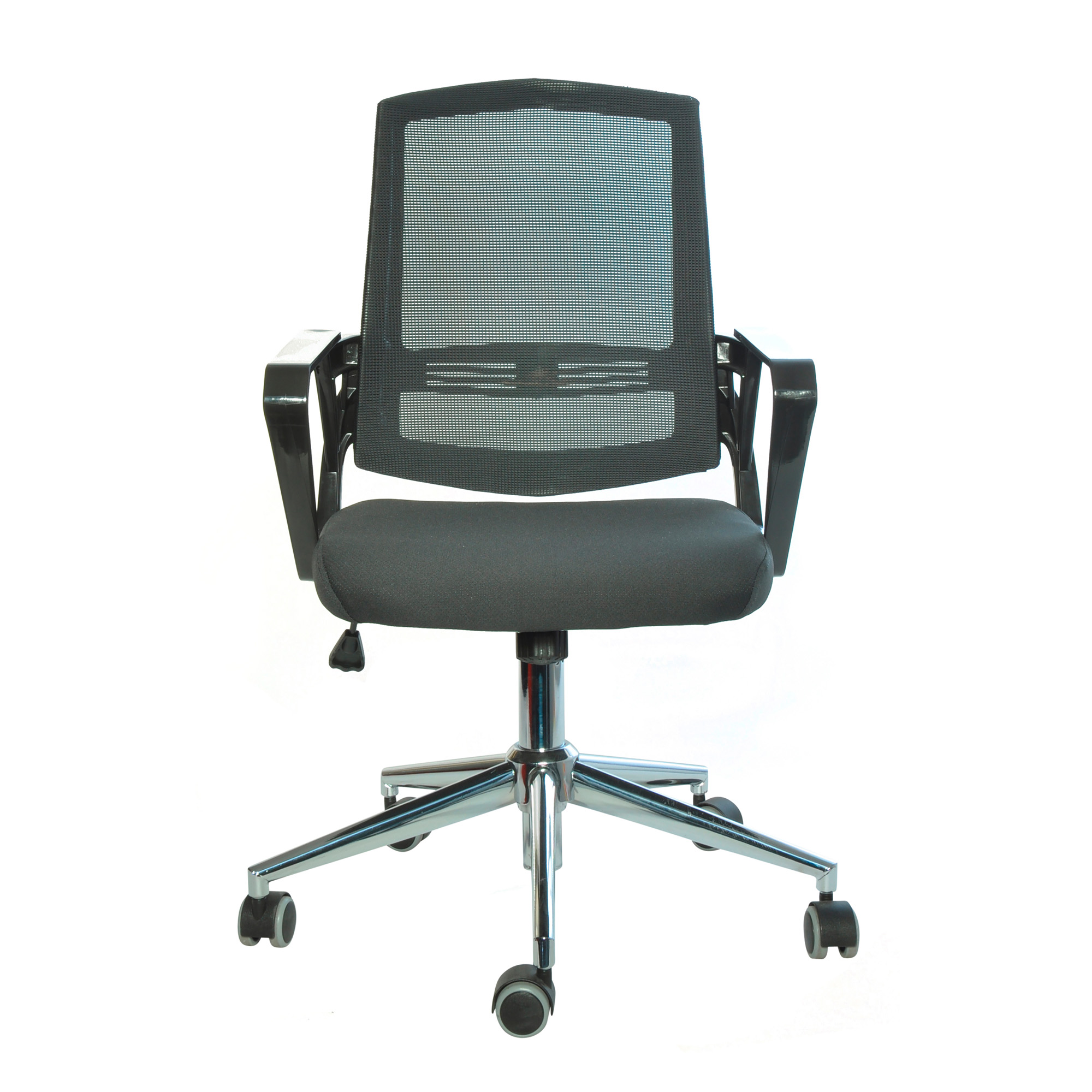 DIMENSIONI: seduta: altezza schienale 48 cm; larghezza schienale 41 cm; larghezza sedile 47 cm x profondità 47 cm, altezza regolabile da 45 a 58 cm per un’altezza totale 93 a 106 cm, ruote dure standard 50 mm, base 63 cm • Schienale in rete traspirante ed elegante base cromata