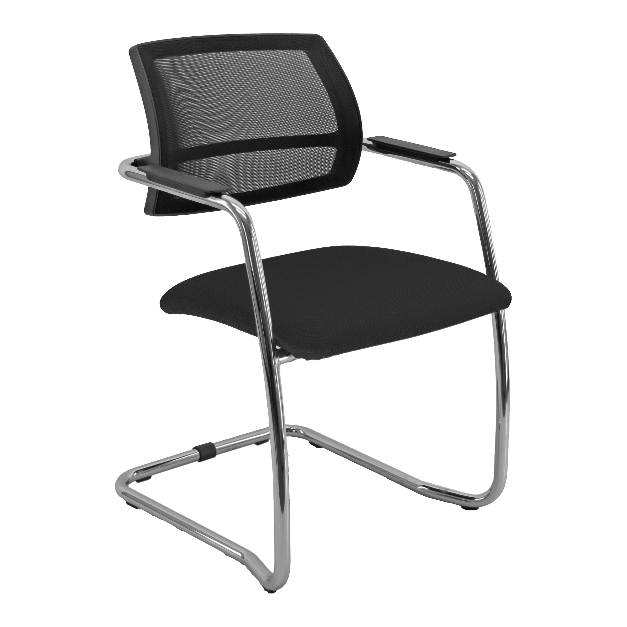 Seduta visitatore con slitta strutturale cromata - completa di braccioli. Rivestimento in tessuto "PLUS - Ignifugo standard" fibra modacrilica e reazione al fuoco classe 1. Alt.tot: 83cm; Prof.tot: 59cm; Alt.schienale: 34cm; Largh.schienale: 50cm; Largh. sedile: 50cm; Prof.sedile: 45cm; Alt.sedile: 45cm.