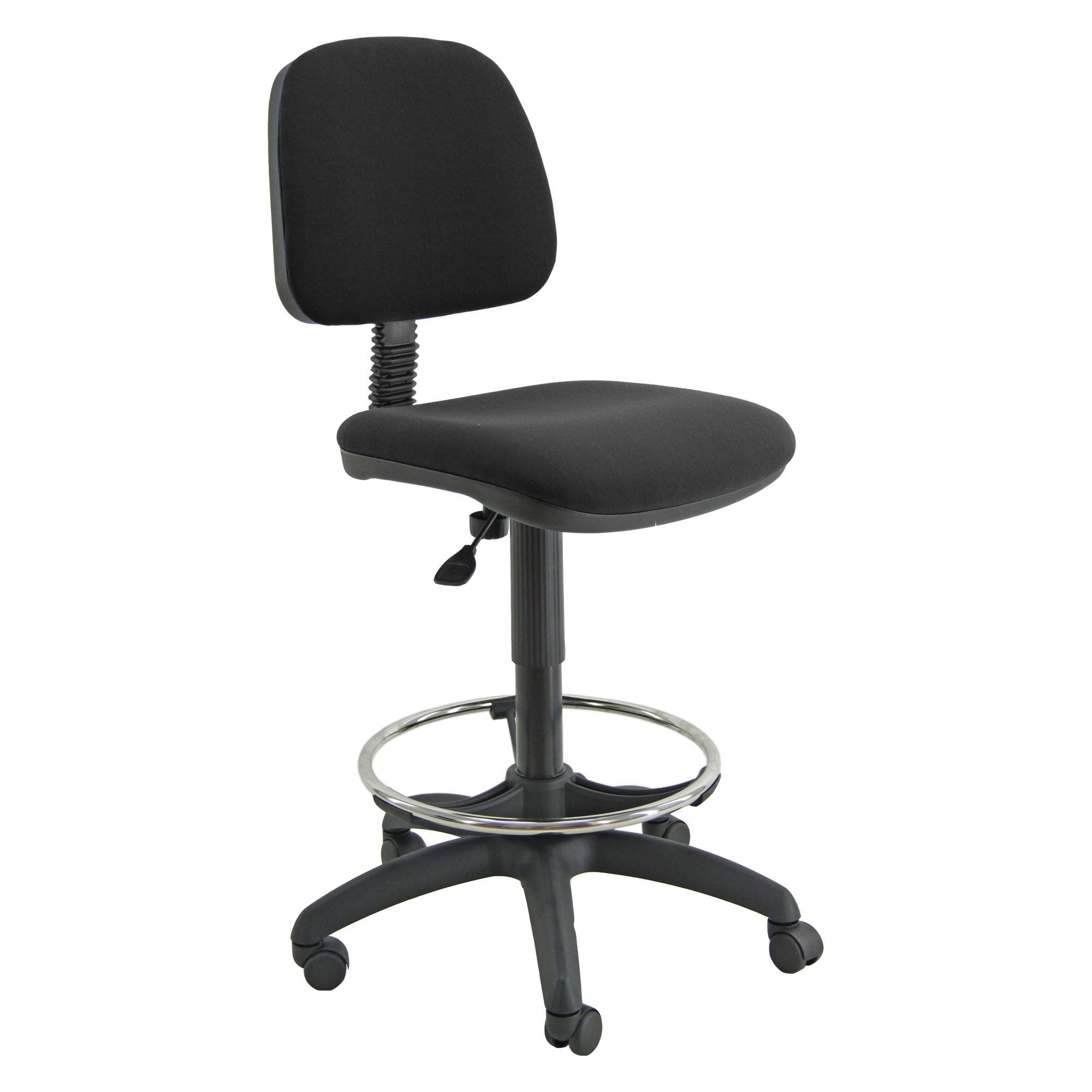DIMENSIONI: Altezza schienale 34 cm; larghezza schienale 39 cm, larghezza seduta larghezza 48 cm x profondità 45 cm, altezza regolabile da 60 a 85 cm, altezza totale da 101 a 127 cm, ruote standard nylon Ø 50 mm, Ø base 63 cm, Peso 10 Kg.