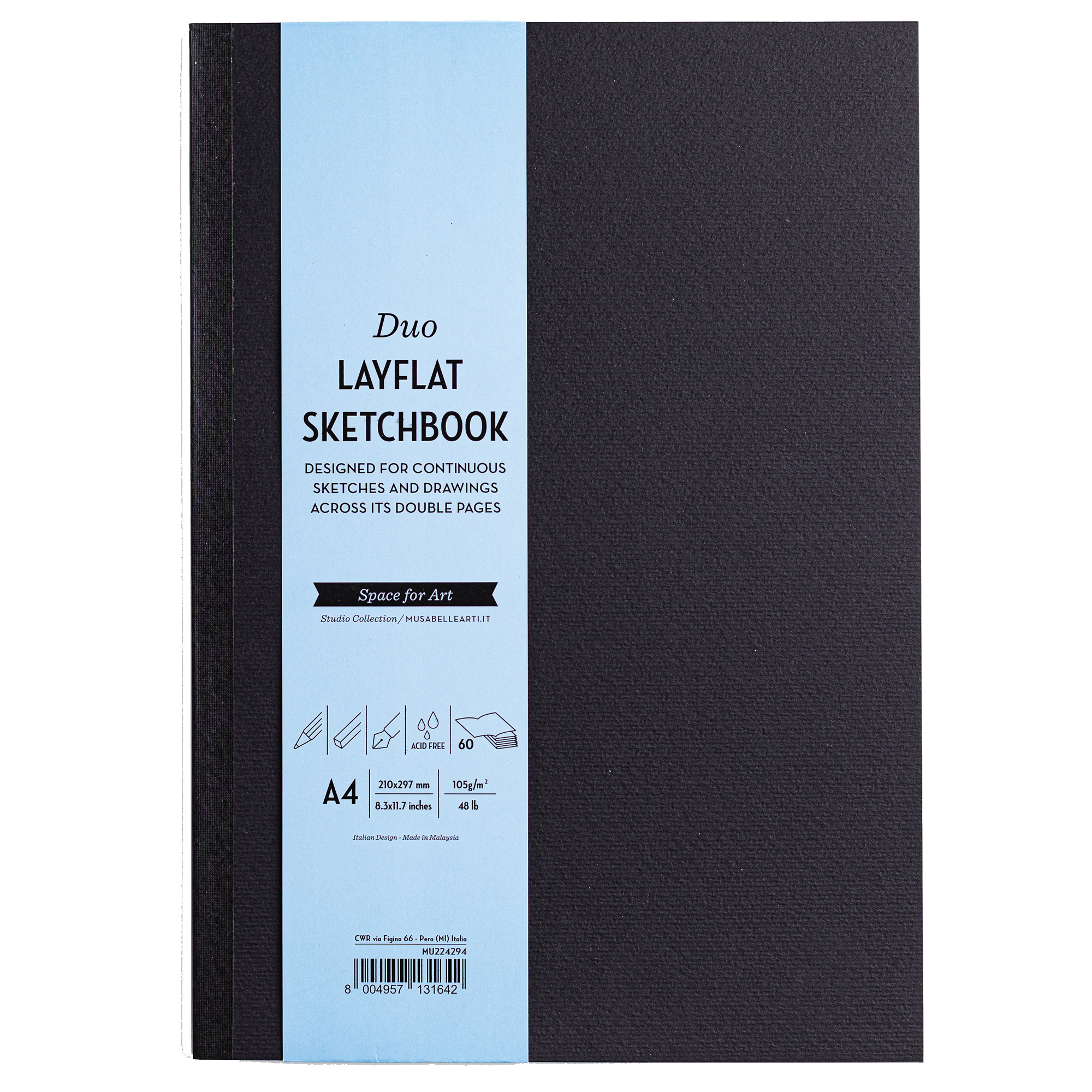 Sketchbook con journal/diario in carta acid free con copertina morbida per disegno, ideale per gli artisti. La caratteristica layflat consente al quaderno di aprirsi diventando completamente piatto, offrendo quindi la possibilità di raddoppiare lo spazio di lavoro in pagine formato A3. Carta da 105 gr a grana fine bianca naturale, 100% cellulosa, mantiene intatti i colori e le tonalità dei disegni.