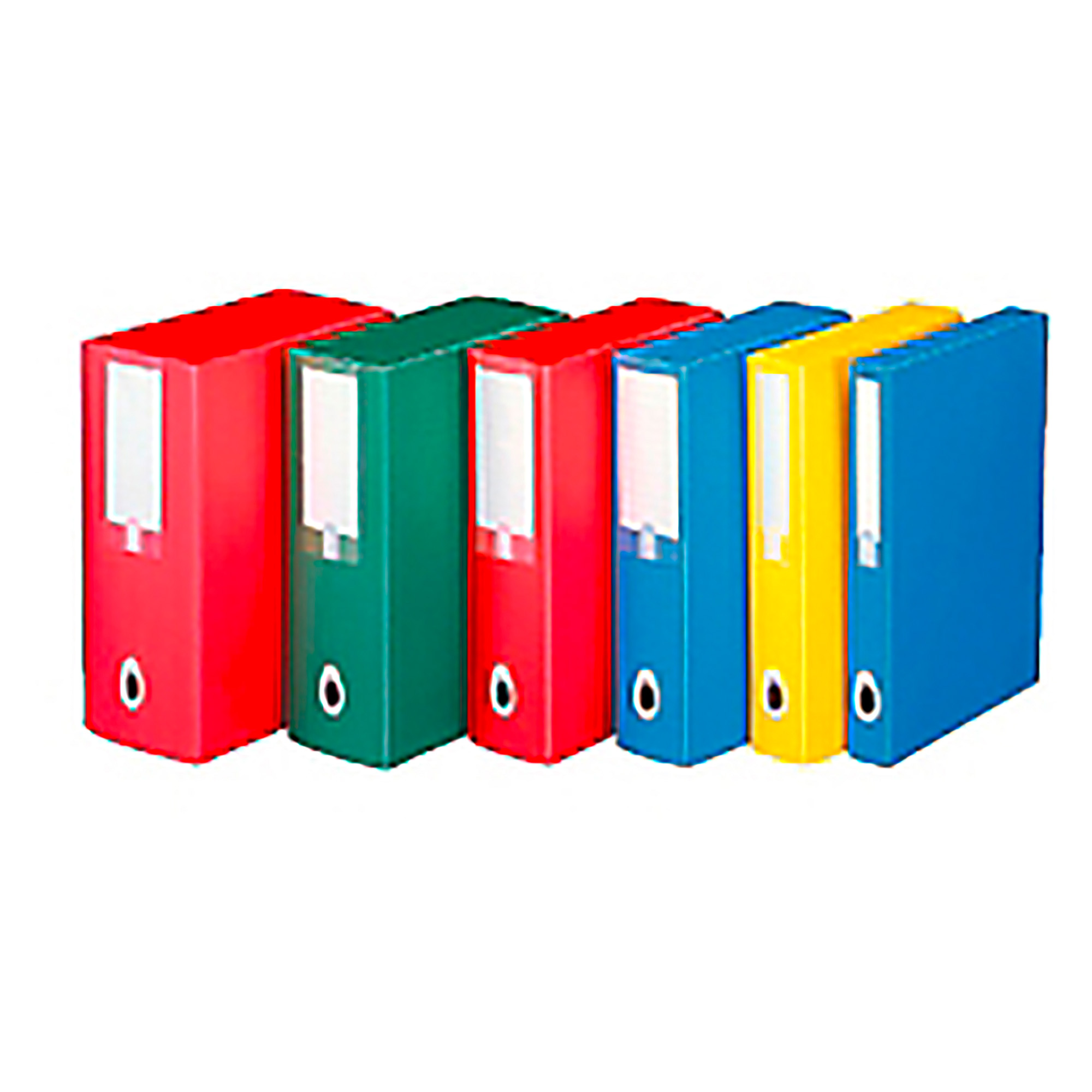 Scatola in ppl con chiusura esterna ed interna a bottone, portaetichetta saldato con etichetta removibile.