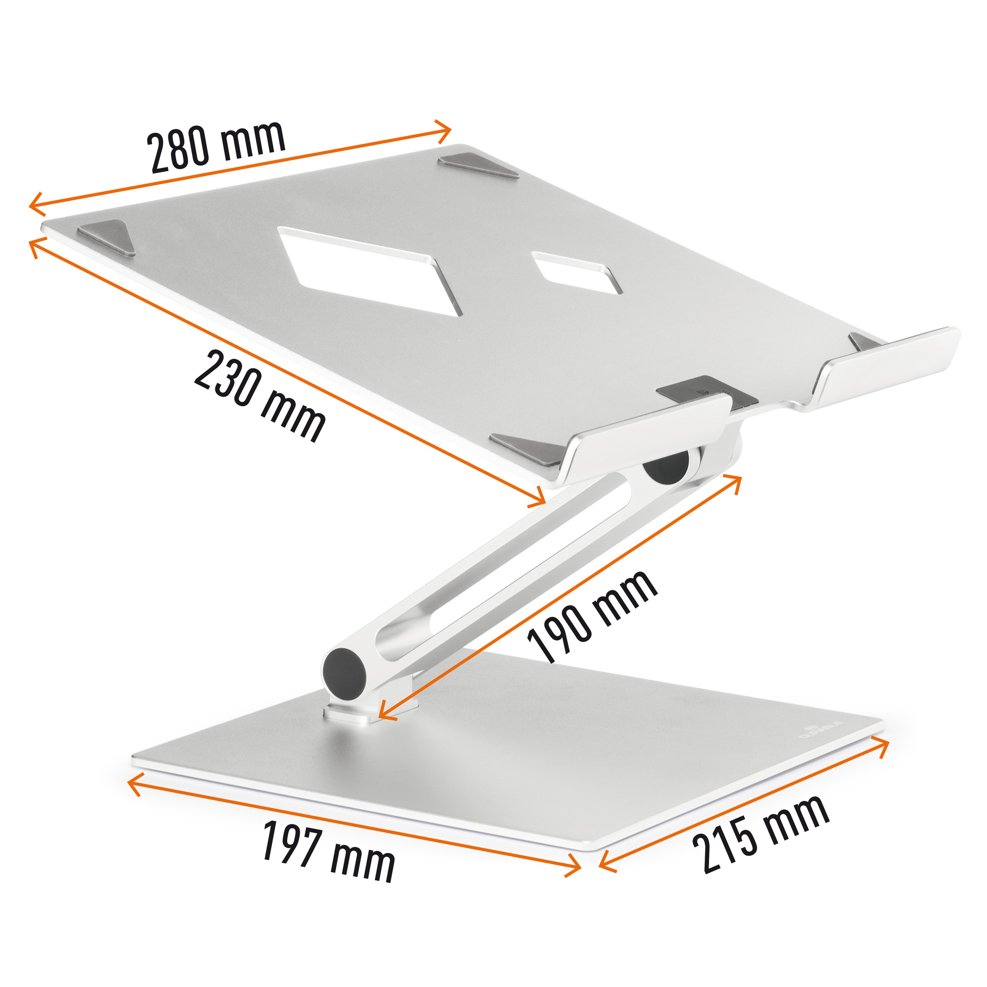 Supporto universale regolabile per pc portatili e tablet da 10" a 17" (fino a 5 kg). Altezza e angolo di lettura personalizzabili per un posizionamento ergonomico del dispositivo. Permette di utilizzare il pc portatile come schermo (in abbinamento a mouse e tastiera aggiuntivi). Elevata stabilità per lavorare in sicurezza. I gommini antiscivolo proteggono il dispositivo dai graffi. Pieghevole, salvaspazio e comodo da spostare. Ottima dissipazione del calore grazie ai fori di ventilazione e alla base in alluminio. L'ampia fessura frontale permette di aprire e chiudere il notebook facilmente. Realizzato in alluminio da 3,5 mm di spessore che lo rende estremamente robusto e permette di supportare il notebook in modo sicuro e affidabile.