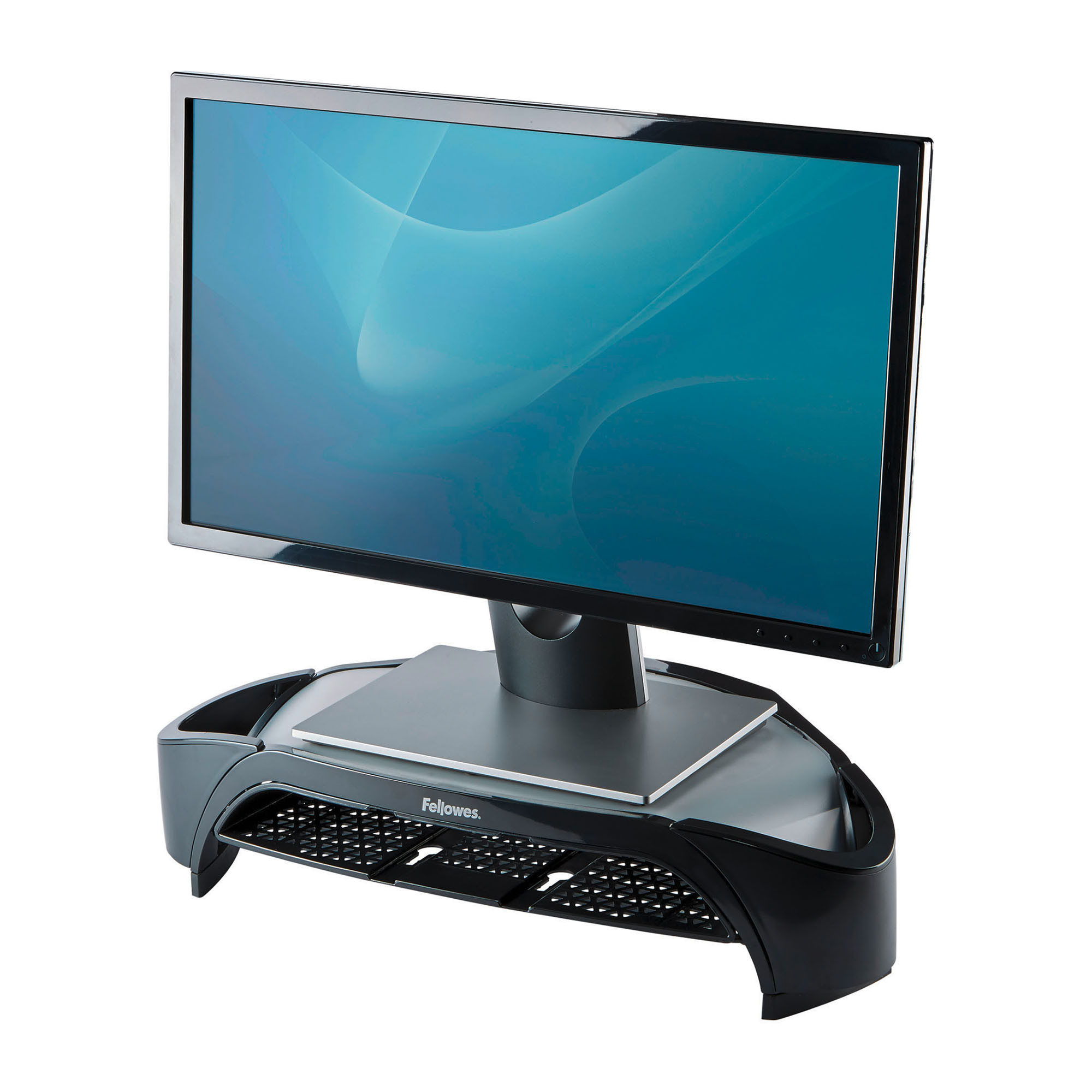 Include una vaschetta porta corrispondenza integrata sotto il piano di appoggio del monitor e due vani porta oggetti ai lati, in grado di contenere penne, cellulare e altri piccoli oggetti.