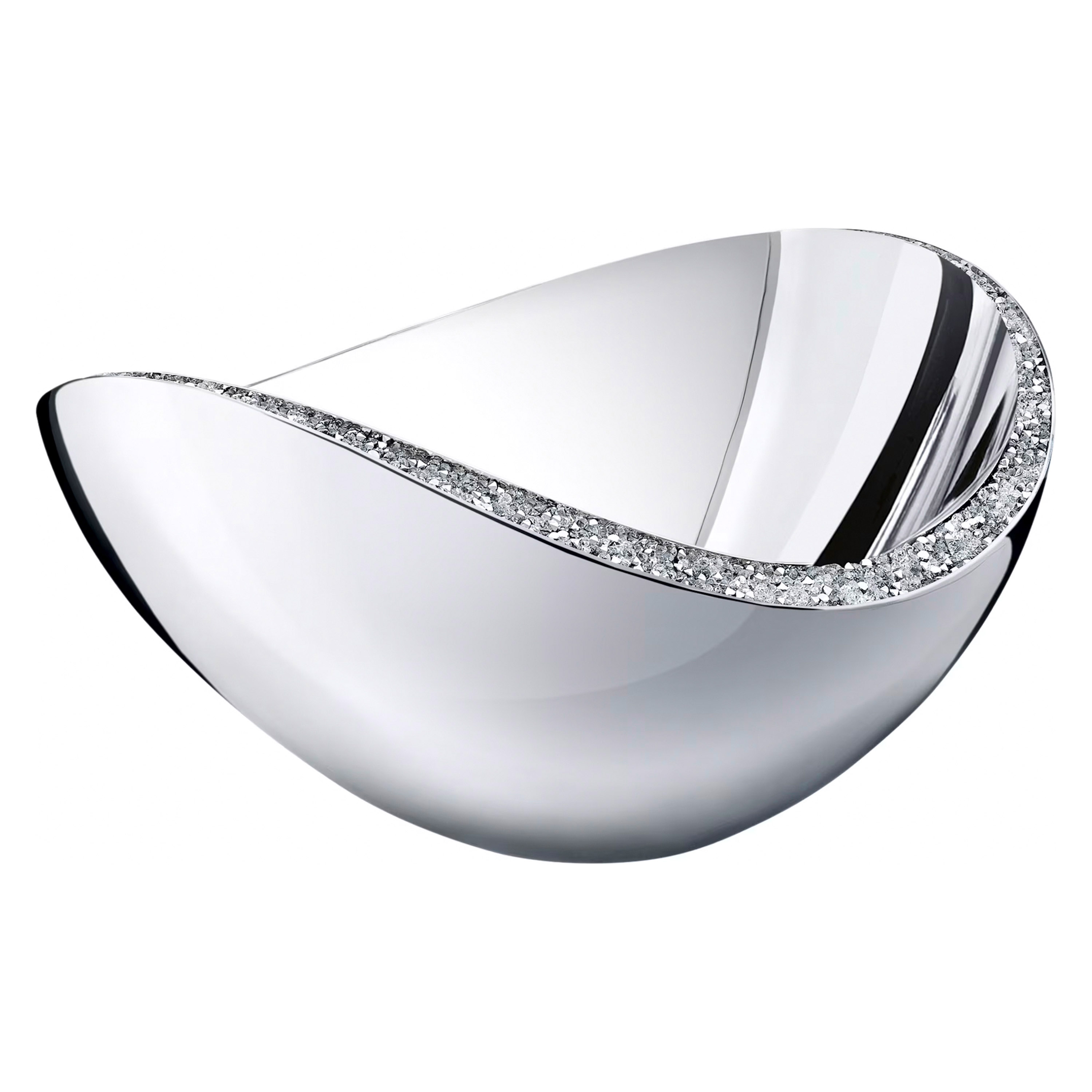 La coppa decorativa Minera SW5293119, disegnata dalla talentuosa designer danese Helle Damkjær, è un oggetto d’arredo che fonde eleganza organica e atmosfera scintillante. Con le sue linee morbide e asimmetriche, riflette una luce sofisticata grazie alla finitura in acciaio inossidabile color argento, impreziosita da un delicato motivo brillante che ne delinea il profilo. Attorno al bordo, circa 1.600 cristalli Swarovski –sia argentati che trasparenti –sono sapientemente inseriti, garantendo un effetto glitterato “metallicshine” che cattura l’attenzione senza risultare eccessivo.