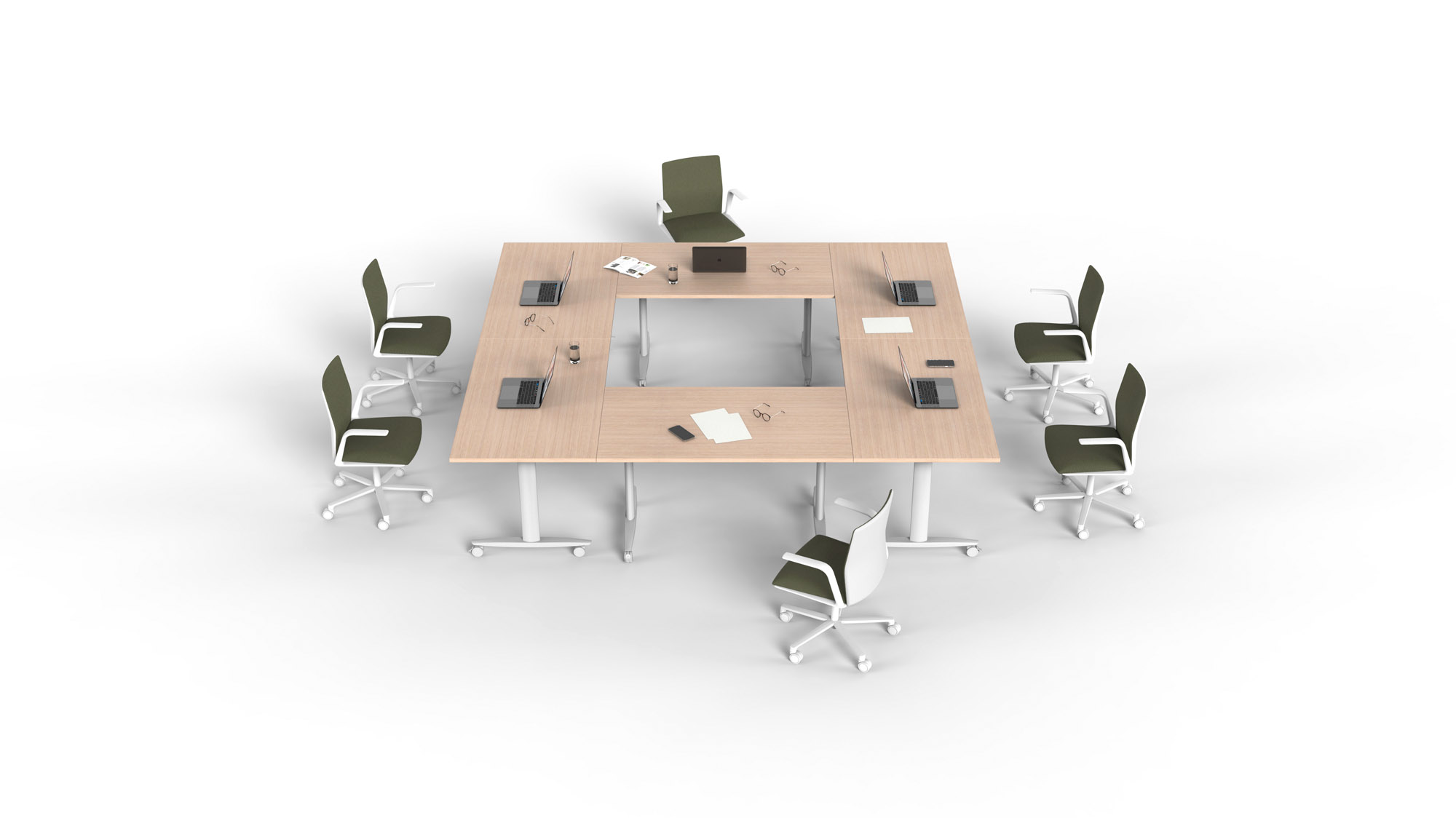 Bordi dei piani dei tavoli in abs in spessore con spigoli arrotondati.