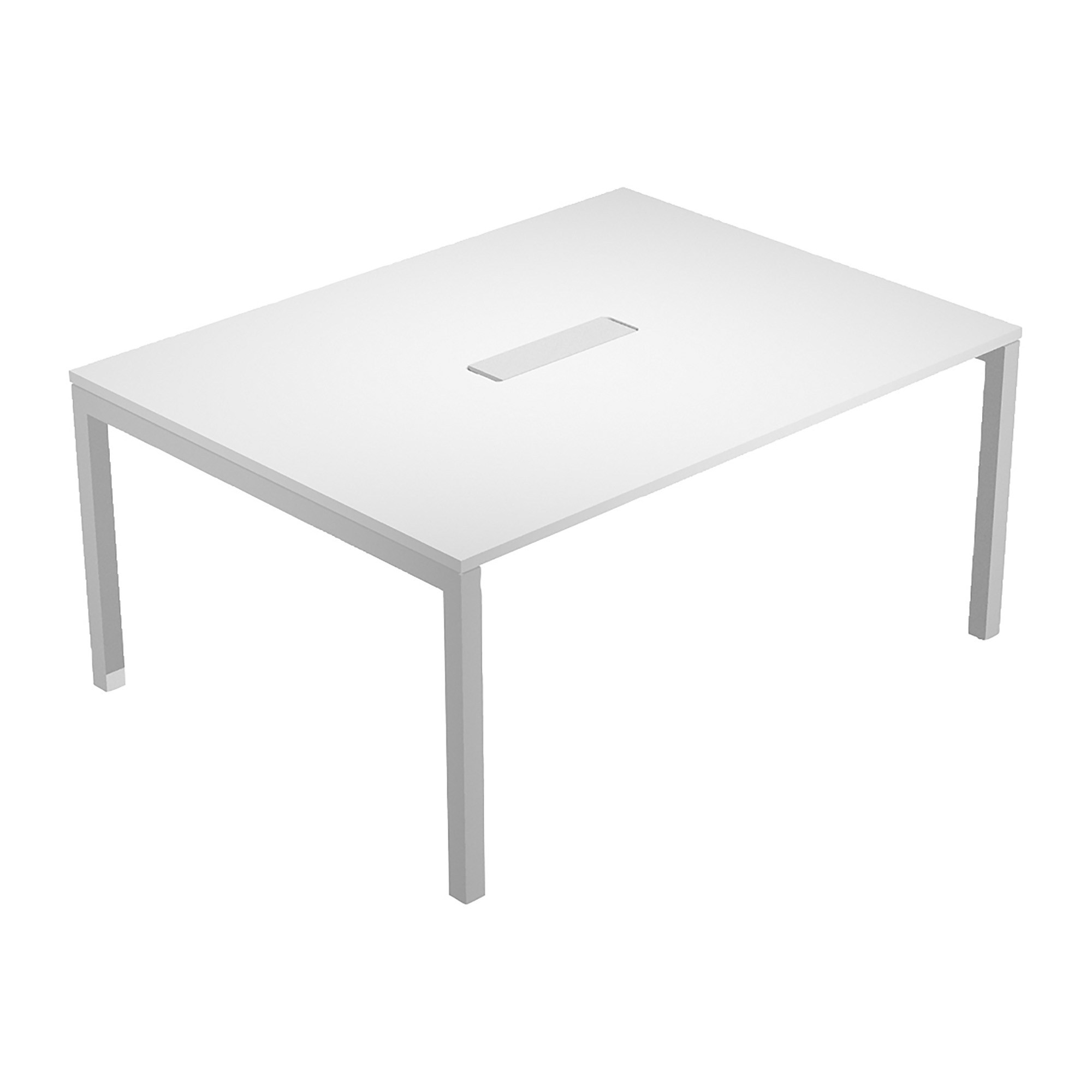 Gambe in metallo sezione 50x50 mm colore grigio alluminio. Ampio passacavi rettangolare (ecopass) al centro di 41x10 cm.