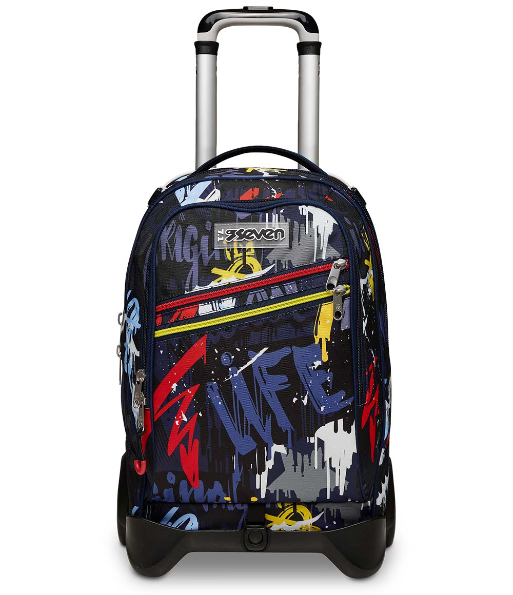 Il Trolley Seven Jack-2WD è uno zaino con carrello sganciabile dotato di ruote da 10 cm. Lo zaino è capiente, da riempire con quello che ti serve: libri, quaderni per scuola, o il cambio per l'allenamento. Schienale e spallacci imbottiti inoltre rendono lo zaino comodo da indossare sulle spalle, mentre se lo agganci al carrello dotato di doppia barra telescopica, protezioni angolari e fondo rinforzato è maneggevole, stabile, pratico e sicuro da trascinare come trolley.