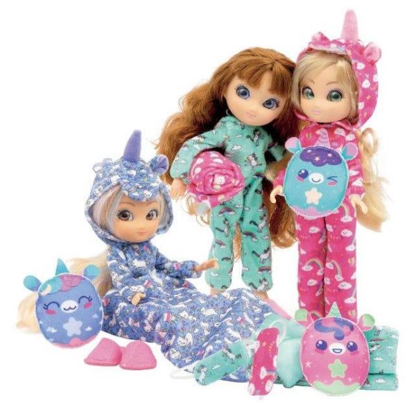 Unique Eyes, Bambole Pigiama Party di Giochi Preziosi, Fashion doll alte 25cm e articolate. La novità dal mondo delle bambole, le nuove dolls che ti seguono con lo sguardo! Adesso potrai Creare il party in pigiama perfetto! Le nuove Bambole includono sacco a pelo, simpatici pigiami unicorno, ciabatte, cuscino, mascherina per la notte e bigliettini di invito al party. Le Bambole hanno lunghi capelli e sguardo magnetico, scopri Amy, Sophia e Rebecca.