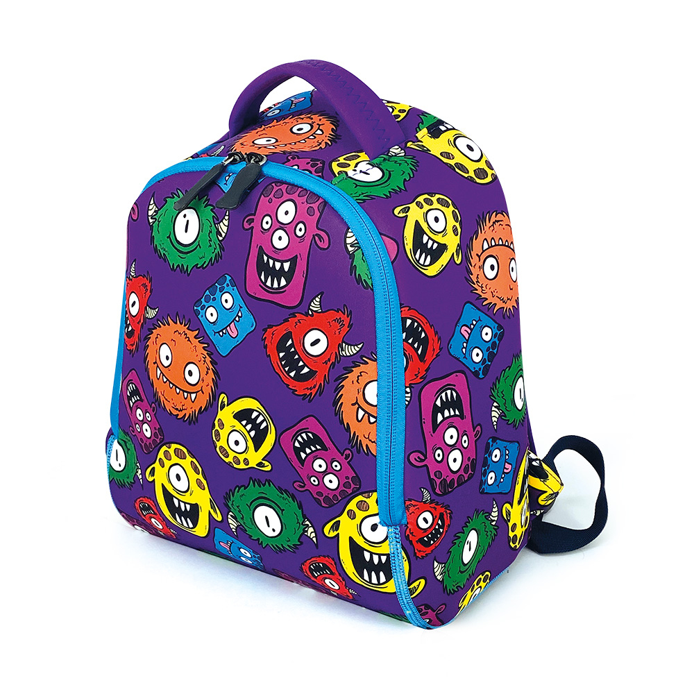Descrizione dettagliataZainetto “Baby Bag” in neoprene colorato, tasca frontale con 2 zip, retro coordinato con spallacci regolabili. 4 soggetti.